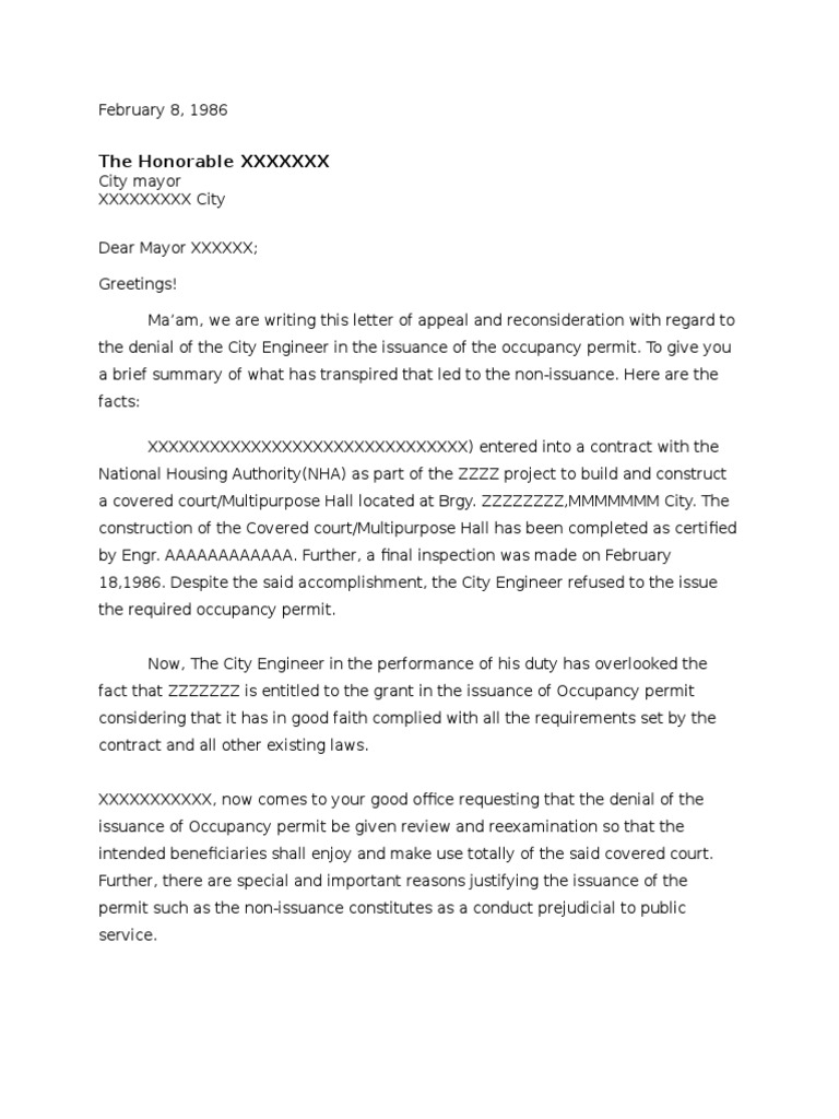 Appeal Letter Sample For Housing Templates At Allbusinesstemplates Com