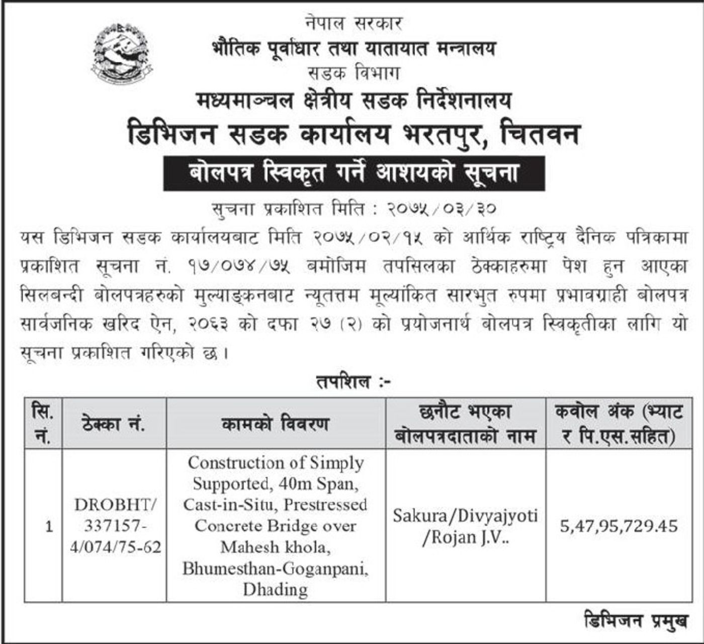 Bids And Tenders Nepal Letter Of Intent Road Bridge Construction Division Of Road Office Letter Of Intent